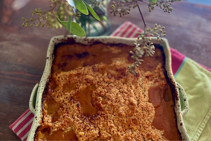 Enfournez ensuite le plat pendant environ 25 minutes à 210°C, jusqu’à ce que le crumble soit doré et croustillant.